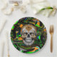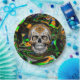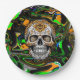Black Orange and Lime Green Sugar Skull Art Paper Plate