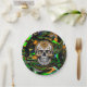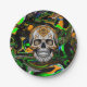 Black Orange and Lime Green Sugar Skull Art Paper Plate
