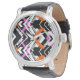 Black, Orange, And Pink Hand Drawn Arrow Pattern Watch