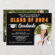 This modern black and orange custom senior photograph graduation party invitation features classy white typography of your college name for the class of 2025. Customise with your graduating year under the chic handwritten script and grad cap for great invites. Add your party or ceremony details next to your graduate photo.