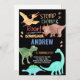 Black Orange Green Dinosaur Birthday Invitations