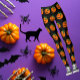 This cute and sweet orange Jack O Lantern has a happy smile on his face because he's ready for yoga class in these adorable tights. They also coordinate with a tee shirt or other tops and become a ready to go comfy Halloween costume.