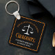 This modern black and orange custom law school graduation keychain features classy typography for a class of 2024 graduate. Customise with your graduating year under the white scales of justice for a great personalised lawyer or attorney gift.