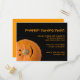 Invite your guests in style with these fun Halloween theme postcard invitations. Card features a orange pumpkin with a face emoticon. Vital party information is set in festive font against a black background. These Halloween invitations are postcards and they do not have envelopes. Save the environment and postage by mailing these Halloween invitations as postcards, or simply just pass the cards out in person.