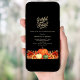 A black coloured background. Decorated with pumpkins and orange and yellow flowers. Personalise and add the party details.