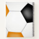This cool soccer themed spiral notebook features the image of a simple, abstractly oversized soccer ball with orange, black and white panels on the front and back cover - athlete's name and varsity letter, monogram or jersey number are customisable - by katz_d_zynes