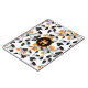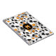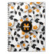 This soccer themed spiral notebook for boys or girls features a pattern of randomly arranged black, orange and white soccer balls in varying sizes turned every which way on a white background - player name and monogram or jersey number are customisable - by katz_d_zynes