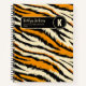 Black Orange Tiger Stripes Pattern Monogram Notebook