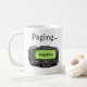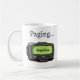 A fun personalised pager mug for anyone who lives by alerts, call shifts, and being reachable. The black and grey pager illustration features a bright green screen where the name can be customised. A lighthearted gift for healthcare teams, medical imaging staff, residents, students, and anyone on call in other fields too. Above the pager, it says “Paging…”, and the screen can be personalised with a name.