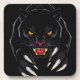 A black panther, positioned centrally in the image, is depicted in a bold, stylised illustration. The panther's face and upper body are featured, with its mouth open, revealing sharp teeth. The animal's eyes are a striking yellow, and its claws are extended, adding to the sense of power and aggression. The panther's fur is a deep black, contrasting starkly with the black background. Strong, defined lines and shading create a sense of volume and texture, showcasing the muscular form. The lighting emphasizes the panther's features, with no visible shadows, suggesting a spotlight or graphic design aesthetic. The style is bold, graphic, and dynamic, ideal for a logo or poster. The image's composition and perspective are directly focused on the panther's intense facial expression and powerful stance, creating an impression of ferocity and strength. Important details include the pronounced claws and the wide-open mouth.