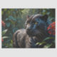 Black Panther - Jaguar in Jungle Red Flowers Tissue Paper