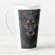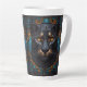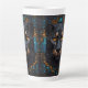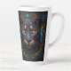 Latte Mug, Paper Cups, Black panther rendered in a stunning mosaic art style. The panther's intense golden eyes are striking against the intricate background of colorful, geometric tiles in shades of blue, orange, and brown. The detailed craftsmanship creates a vivid, lifelike portrayal of the majestic feline, blending natural beauty with artistic abstraction. The mosaic technique adds depth and texture, making the image both a visual and artistic marvel.