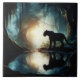 Black Panther Reflected in Pool of Water in Jungle Ceramic Tile