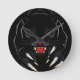 A black panther, positioned centrally in the image, is depicted in a bold, stylised illustration. The panther's face and upper body are featured, with its mouth open, revealing sharp teeth. The animal's eyes are a striking yellow, and its claws are extended, adding to the sense of power and aggression. The panther's fur is a deep black, contrasting starkly with the black background. Strong, defined lines and shading create a sense of volume and texture, showcasing the muscular form. The lighting emphasizes the panther's features, with no visible shadows, suggesting a spotlight or graphic design aesthetic. The style is bold, graphic, and dynamic, ideal for a logo or poster. The image's composition and perspective are directly focused on the panther's intense facial expression and powerful stance, creating an impression of ferocity and strength. Important details include the pronounced claws and the wide-open mouth.