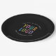 Promote your brand with durable round paper plates printed with your company logo. You can easily personalize these black plates online to match any event or promotion. All colors are customizable. FDA-compliant, these plates are printed in the USA and sold in small order quantities. The size options are 9 inches and 7 inches diameter. No setup fee.