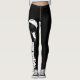 paraglide leggings with paragliding pixie logo on front and back ankle. Black Leggings with white text and paraglider. Paraglidingpixie.com