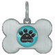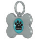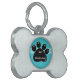 A sweet black paw print on a aqua animal pattern background, customise this pet tag with pets name and number to call if they get lost.