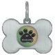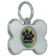 A sweet black paw print on a shaded green and orange background, customise with pets name and number to call if he gets lost.