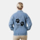 Black Paw Prints Design on the back of this Denim Jacket with customisable text to change or delete.. Select your appropriate size from the drop-down menu.