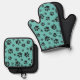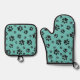 Black Paw Prints Design Oven Mitt and Pot Holder Set with customisable background colour.