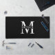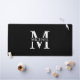 feature personalised white monogram in classic serif font style with box of name in the middle of monogram on black background.