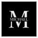 featuring personalised white monogram in classic serif font style with box of name in the middle of monogram on black background.