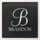 Black Personalised Script Monogram and Name Glass Coaster