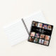 Personalised photo collage notebook featuring a modern black background that can be changed to any colour, 12 pictures for you to customise with your own, initial, and your name in a elegant script typography font.