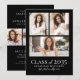 The back doubles as a graduation party invitation with a matching three-photo collage. Below the photos, the event details are presented in clean white typography, with space for the date, time, location, and RSVP information. The black-and-white colour palette keeps the design sleek, minimalist, and easy to customise. You can edit the text, fonts, photos, and layout to match your style or school theme.