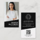 On the back, the top section stays white with black text for your contact details, QR code, and social icons, while the bottom portion shifts to a solid black background with white fonts and details for a striking, modern contrast.