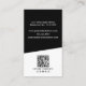 On the back, the black background keeps your contact details, QR code, and social media icons clear and easy to read. The mix of white typography and subtle black accents creates a sleek, modern feel that works well for any industry.