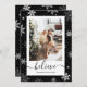 Magical black holiday card featuring snowflakes, stars and snowfall on a black background. Easily personalise this believe holiday card with your photo and text.