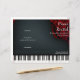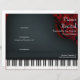 This is an elegant folded recital or concert program template featuring a stylised piano illustration on a background of clefs and music symbols.