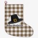 Black Pilgrim Hat on Brown Plaid - Thanksgiving Large Christmas Stocking