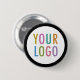 Personalise our high quality round pin back button with your company or school logo. The print is protected with a glossy scratch resistant and UV resistant mylar. Pin back buttons have a long history as an effective promotional tool and can become collectable souvenirs. The round button is available in 5 sizes: 1.25 inch, 2.25 inch, 3 inch, 4 inch, and 6 inch. This design has a white background with a black border. Also sold in other colours and all colours are customisable. No minimum order quantity and no setup fee. Made in USA.