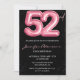 Black Pink 52nd birthday invitations Balloon Glam