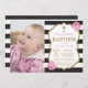 Black Pink and Gold Glitter Baptism Invitation with custom photo. Girl Baptism. First Communion. Christening. Child Dedication. Black and White Stripes. Pink Floral Flower. For further customisation, please click the "Customise it" button and use our design tool to modify this template.