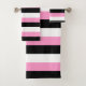 Très chic black, pink and white stripes bath towel set with fabulous matching bath accessories.