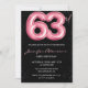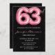 Black Pink Balloon Glam Glitter 63rd birthday Invitation