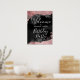 Welcome guests in chic style with this vertical birthday party sign featuring a distressed black background, soft pink accents, and crisp white fonts. A double white line frame adds a clean, refined touch, while rose gold foil-style detailing runs along the top and bottom edges for a modern, feminine twist. Please note: the rose gold foil is a printed image and will not have any actual shine or metallic texture.