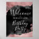 Simple Stylish Elegant Black and Pink Birthday Welcome Sign: