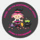 Black Pink Cute Girl Halloween Birthday Witch Classic Round Sticker