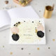 Romantic black & pink flowers with gold leaves botanical wedding guest book