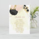 Romantic black & pink flowers with gold leaves botanical wedding seating chart card.
