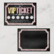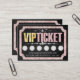 This glamourous customer loyalty card features a VIP ticket design over a black foil style background. A border of pink sequin diamonds frames the text portion. An area for stamps is located at the bottom, where you can offer a customer discount for your business. The phrase "VIP TICKET" is printed at the top with the word "VIP" printed in a gold foil design, and "TICKET" printed in a pink glitter pattern. The back of the card features the same black, foil style background as the front, with diamond frame.