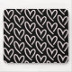 Pink hearts with black background mouse pad. Place by your laptop and keep your wrist supported. A new look for your office and gift idea for students, kids room, or office supplies.
