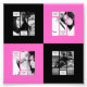 This 4 x photo collage template with 8 text fields has a striking black and pink theme. It can be used as 'is' with this quality photo paper or it can be transferred to any other gift type available via Zazzle from this store. See below for your options. You can transfer this design to greeting cards (horizontal), invitations (create a save the date), mugs, or any other gift type that suits this design. Create a unique birthday or Christmas gift, retirement, graduation, wedding, or anniversary, the options are limitless. The photos here have a filter so your photos will transform to black and white. If you want to remove the photo filter use the customise/personalise options. Other background types are available. Gift your parents, grandparents, brother or sister, husband, wife, son or daughter with a unique photo gift. This is a unique modern design perfect for the upbeat couple who likes to stand out and their gifts too!