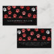 Stylish animal themed business card features a stylish and whimsical puppy dog paw print pattern with blush pink, white and maroon paw prints on a black background. Custom name and title or role presented on a black banner with stylish text. The back of the card is complimentary to the front with contact information presented in coordinating typography.