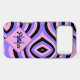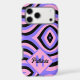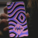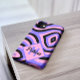 Step into a world of colour and design with our pink and purple retro 70s Pink and Purple Psychedelic wavey pattern with Monogrammed initials and name Phone Case.