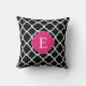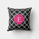Black Pink Quatrefoil Monogram Cushion